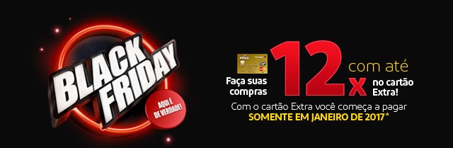 | | | | | | | | | | | Regulamento: Confira as regras de desconto, frete e parcelamento no nosso site. Promoção não cumulativa com outras ofertas ou descontos. As ofertas e promoções são válidas enquanto durarem os estoques ou até o dia 25/11/16, somente para pedidos feitos pela internet ou pelo televendas (11) 4003-0363. *Válido para uma seleção de produtos vendidos e entregues pelo Extra.com.br. **Confira as regras e condições do frete ao adicionar o CEP na página de produto. Preços e condições de pagamento exclusivos por este e-mail. Clique na oferta desejada para comprar a oferta anunciada. * O financiamento de despesas está sujeito à incidência de juros de 1,49% a 1,99% ao mês e IOF. O valor total comprometerá seu limite de crédito. Consulte o CET e a taxa anual de juros no momento da contratação. Todas as imagens deste e-mail são meramente ilustrativas. Consulte o site para obter mais detalhes dos produtos anunciados. Central de Atendimento Para entrar em contato com o extra.com.br, acesse a Central de Atendimento Telefone: 4003-3383 (Capitais e Regiões Metropolitanas - custo de uma ligação local + impostos). Horário: de Segunda a Sexta-feira das 08h00 às 20h00, e aos Sábados, das 08h às 18h. www.extra.com.br - CNPJ: 07.170.938/0001-07 - Caixa Postal exclusiva da loja virtual: 19083 Cep.: 04505-970 São Paulo-SP | | |